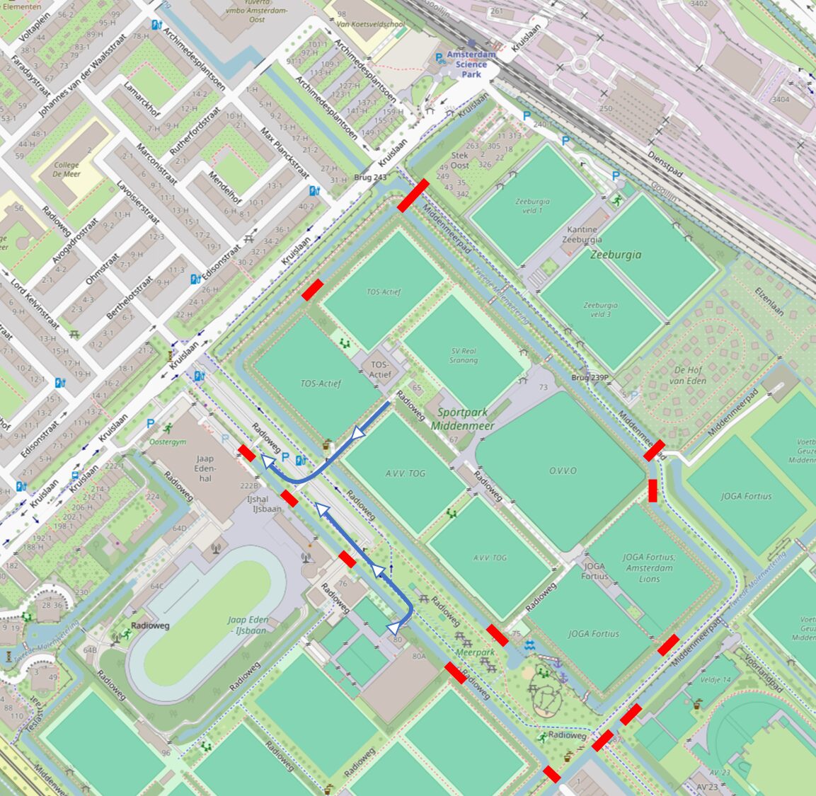 • De overige wegen in het sportpark zijn gewoon bereikbaar;